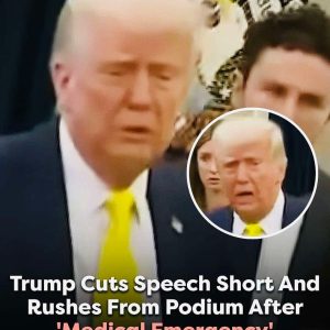 President Donald Trump was forced to cut his speech short during a White House press conference due to a medical emergency. At the time, Trump was swearing…