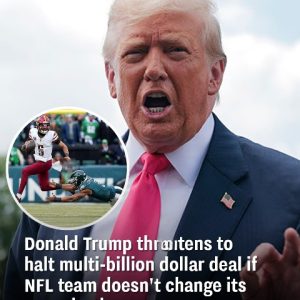 Trump vows to stop a massive deal if the NFL team refuses to restore its former name.