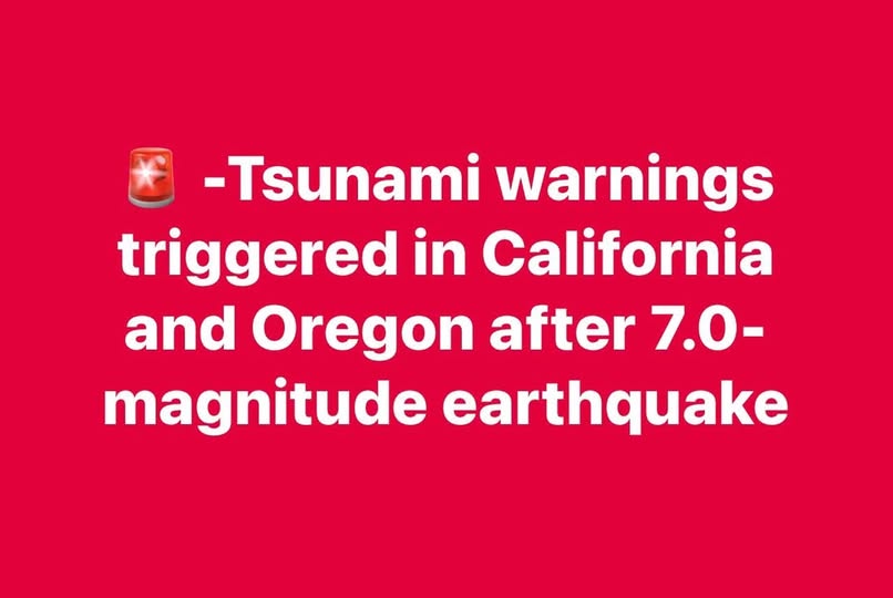 🔴 Tsunami warnings triggered in California and Oregon after 7.0-magnitude earthquake