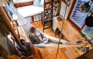 More than just a living space, Sophie’s tiny house doubles as a workshop for her artistic endeavors. Using a vintage loom, she hand-weaves exquisite textiles that blend tradition with modern aesthetics, transforming her home into a sanctuary of creativity and craftsmanship.